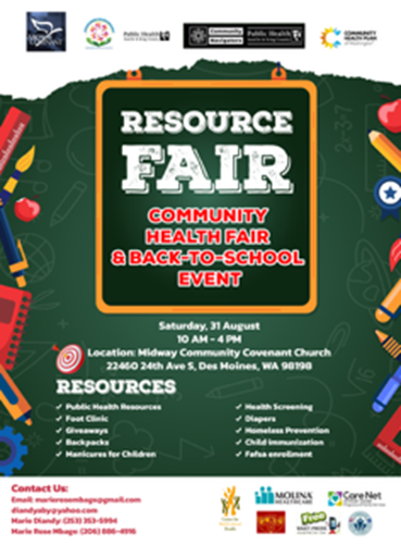 Announcements Annual Community Health Fair & Back-to-School Event Published August 16, 2024 at MCCC August 31, 10am – 4pm Please contact MJ Higgins if you are available to help.